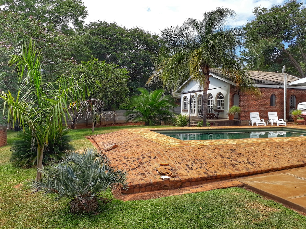 Relax with the whole family at this peaceful place to stay. A fully equipped self-catering apartment with a pool and lush gardens —just a short walk to town and under 3 km from Victoria Falls.