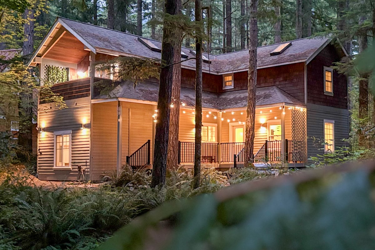 レビュー46件、5つ星中4.87つ星の平均評価ノース・カスケードの緑豊かな森の中にあるキャビンで森林浴を楽しめます!