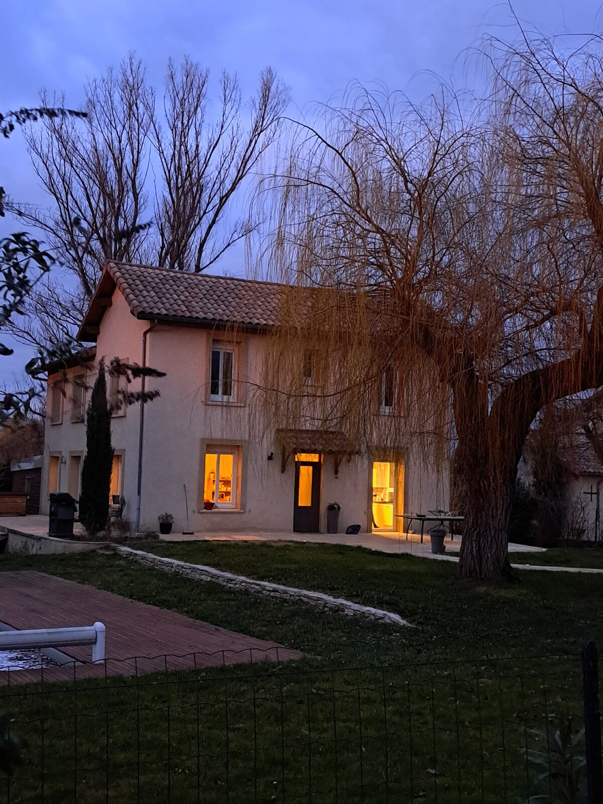 Nous vous accueillons dans une partie privative rénovée en 2023, située au RDC de notre maison, avec accès au jardin. (Nouveauté 2025 : ajout d'une clim réversible). La maison se situe à 5 min en voiture de Romans, 12 min de la gare Valence TGV, 20 min de Valence. Une boulangerie se trouve à 2 min, et une grande zone commerciale (avec restaurants) à 8 min. De nombreuses balades vous attendent dans le Vercors ou sur les berges de l'Isère. Profitez de tarifs avantageux à la semaine (-15%).