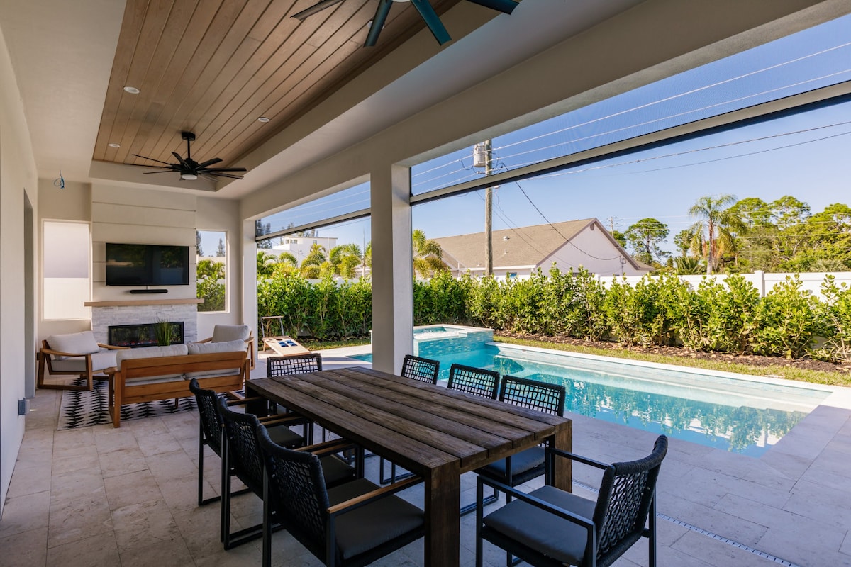 新しい豪華プール付きの家、3ベッドルーム、焚き火台、ミニゴルフ