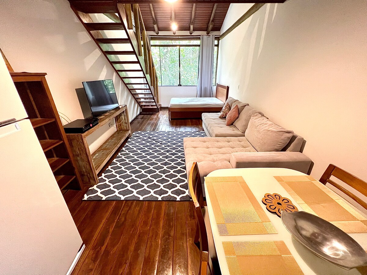 スタイリッシュで快適な家、5つ星スイート(ガスシャワーと大きなバスタブ、エアコン、天井ファン、高品質のクイーンサイズのマットレス、400スレッドのコットンシーツ、テレビ、高速WIFI - 2つのプロバイダー、ネット付きバルコニー、アトランティックフォレストの眺望、広々としたクローゼット。 さらなる快適さのために、暖炉、フルキッチン、バーベキューキオスク、2人用プール、サウナ、川などがすべてプライベートでご利用いただけます。 ペットのための囲まれた庭。 静かなコンドミニアム、ビーチへのアクセスが簡単。