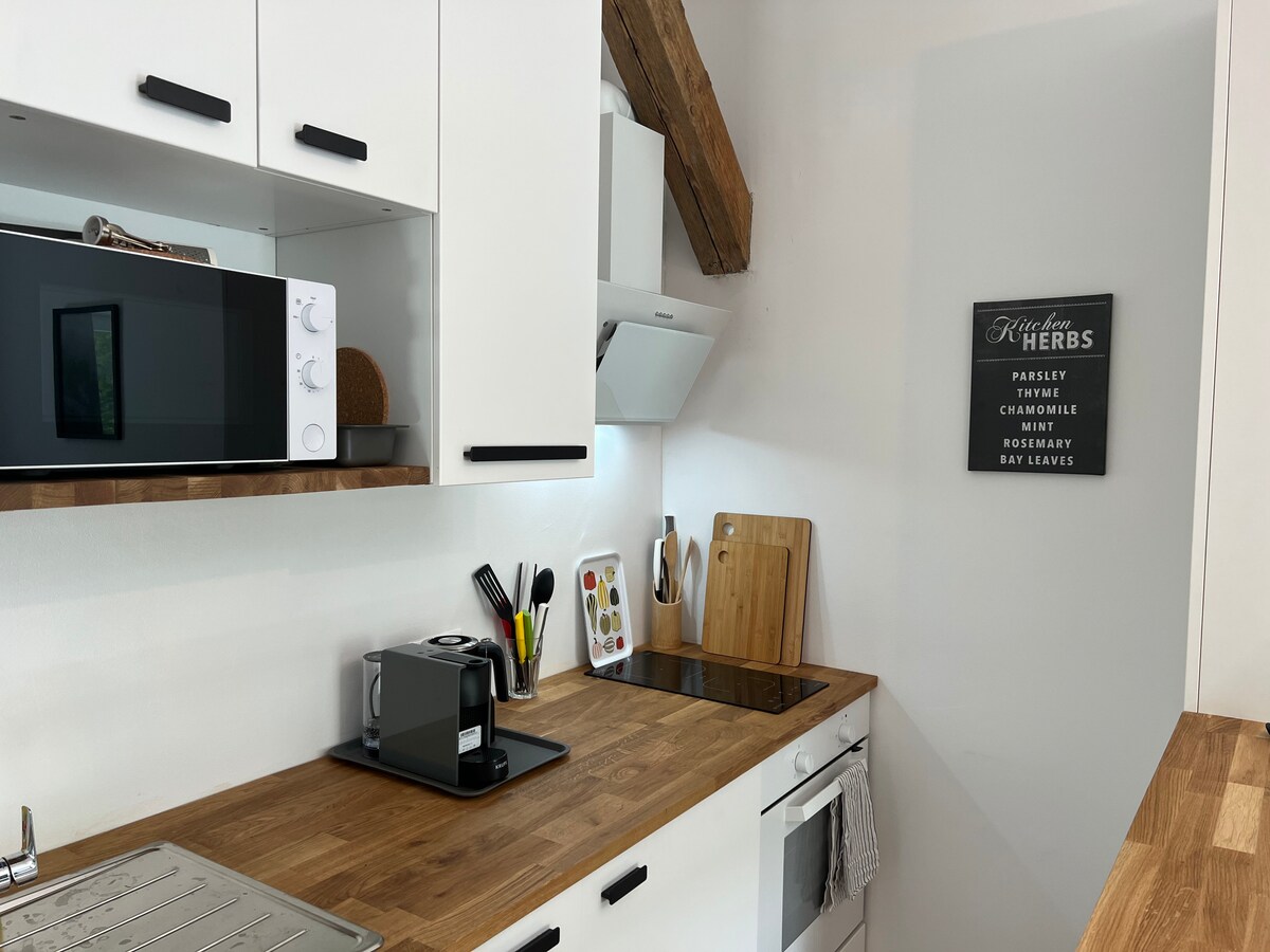 Unser ganz neu renoviertes Apartment verfügt über ein separates Wohn-bzw. Schlafzimmer. Ausgestattet mit einem gemütlichen Doppelbett und einer Schlafcouch für 2 Personen .Die Küche ist ausgestattet mit 2 Kochplatten , einer Spüle , Kühlschrank und einem Geschirrspüler. Das Badezimmer ist modern gestaltet und bietet eine ebenerdige Dusche. Kostenloses TV und Wlan steht Ihnen im ganzen Haus zur Verfügung. Ein genussvolles Frühstücksbuffet können wir gleich nebenan anbieten. (Bezahlung vor Ort)