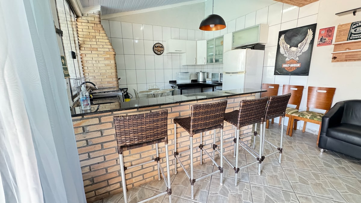 広々とした2階建てアパート - Wi-Fi - エアコン - 専用駐車スペース3台分 - 3つの寝室(タオル、毛布、ベッドリネン付き) - ダブルベッド3台と二段ベッド1台 - バルコニー(シャランケイラ付き) - リビングルーム - 4つのバスルーム - 設備の整ったキッチン - ダイニングルーム ・内外の物干しロープ付きサービスエリア -多数の予約(12人以上)の場合、アパート内の全員を収容するためのベッドをご用意しています。追加の清掃料金200レアルがかかります。