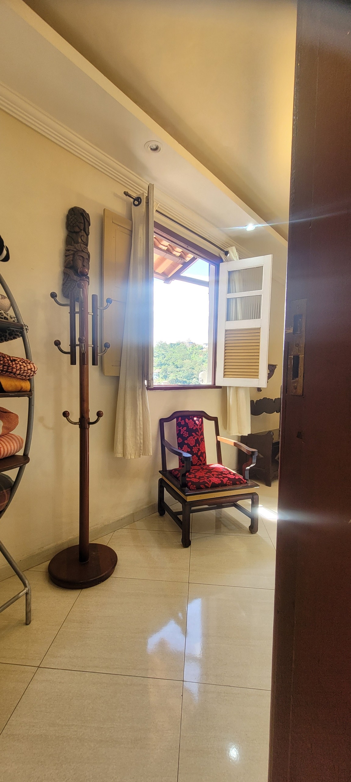 Gudhu, é um tipo de chalé. Suíte equipada com Cooktop, GELADEIRA, SANDUICHEIRA, MICROONDAS, PENELA ELÉT. DE ARROZ, CHALEIRA ELÉT., GARRAFA TÉRMICA, utensílios para alimentação, roupas de cama e banho. A suíte possuí uma entrada privada e outra entrada COMPARTILHADA junto a uma vaga na garagem que, é COMPARTILHADA com mais pessoas. Pode-se estacionar em frente ao espaço caso achem conveniente. Venham conhecer este espaço incrível, com uma vista linda da Serra do Caraça, pista de caminhada...