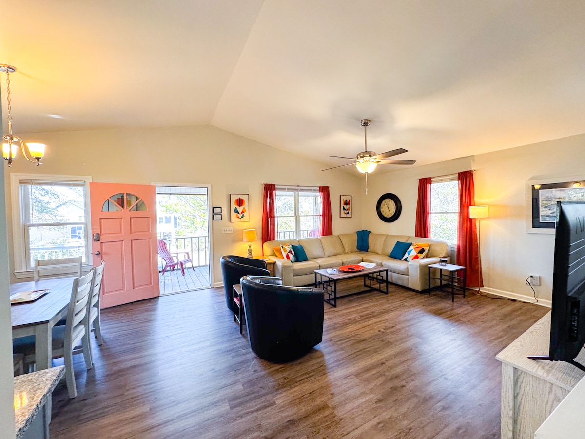 2026年のカレンダーが予約可能になりました!ビーチまで徒歩5分!ご家族、ご友人、そして子犬を連れて来てください。お店やレストランの近くにあるこの家を気に入っていただけることでしょう!寝室4室(8人用)、フルバスルーム2室、スクリーン付きポーチ、そして花崗岩とステンレス製のキッチンが完備されたこの家には、すべてが揃っています!すべてのデバイスに電力を供給するための高速インターネット。ビーチチェアとバギーが含まれています。ベッドメイキングとリネン類はすべて含まれています!追加のスペースが必要ですか?私たちのビーチヘブンOKIがすぐ近くにあります!