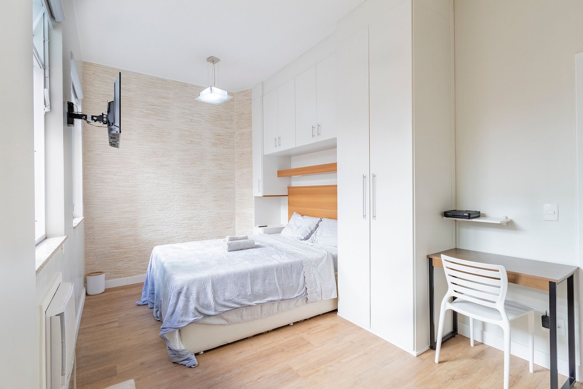 設備の整った寝室とリビングルーム、特別なロケーション! •地下鉄とフラメンゴビーチから6分 • 救世主キリスト、シュガーローフマウンテン、コパカバーナ、イパネマ、レブロンのビーチなど、リオの主要な観光スポットに近い! • スプリットエアコン、Wi-Fi、スマートテレビ •寝室とリビングルーム、設備の整ったキッチンとフルバスルーム • お店、バー、レストランに近い • 24時間ドアマンとセルフチェックイン