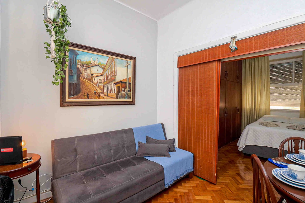 コパカバーナのビーチに面したおしゃれなおしゃれなアパート! -クイーンベッド、ソファベッド、ダイニングテーブル、エアコン、ホームオフィス用スペース( Wi - Fi 300 Mbps )。 コンロ、冷蔵庫、オーブン、電子レンジ、ミキサー、コーヒーメーカー、ジューサー、サンドイッチメーカー、フライパン、キッチン用品、各種書籍、アプリ付きギター、テレビ付きキッチン。 -アパート周辺の建物の下にある市場と薬局、レストラン、ショップ。 -空港から8.3km - Cristo Redentorまで11.5km - Pão de Açúcarまで2.8km