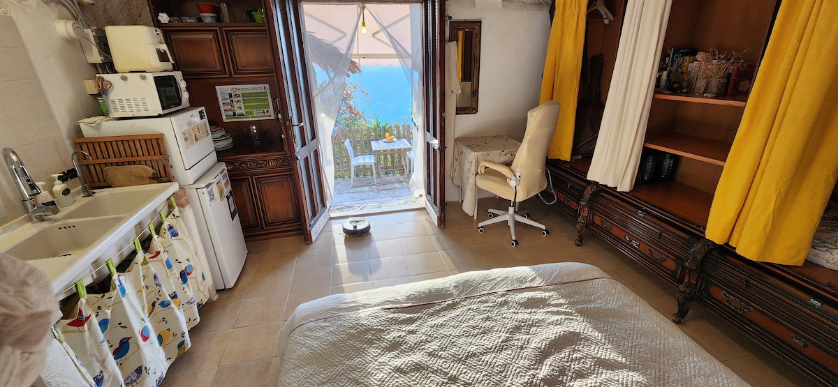 Peculiar cave-like studio: for REMOTE WORK & DIGITAL NOMADS w/ tropical outdoor WC & shower. 5km from SEA, @ 277mt ALTITUDE Historical. ❤️ FAST Wi-Fi 900+mbps STABLE & NO LIMITS ❤️ AIR CON w/ HEATING ❤️ E-BIKES AFFORDABLE, POWERFUL, FAST, & FOLDABLE = no more fuel costs! ❤️ SAFE & UNESCO Site In Cilento PARK No crime, no quakes ❤️ FRESH AIR Views & NATURE Boars & wildlife close by ❤️ COUPLES, SOLO, & GROUPS More guests? Ask, we have more flats ❤️ ECO We REDUCE, REUSE, & RECYCLE