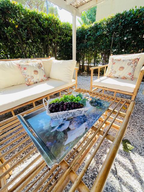 Welcome to Casa Glicine, where comfort and elegance come together in perfect harmony. Breathe in the authentic vibe of Versilia and relax in the prestigious neighborhood of Focette,500 meters from the sea, far from the chaos but close to all the attractions. The house,on the first floor,has a double bedroom, a bright living area with kitchen and sofa bed.The highlight is the stunning panoramic rooftop terrace, from which you can admire the centuries-old pine trees and the peaks of the Apuan Alps