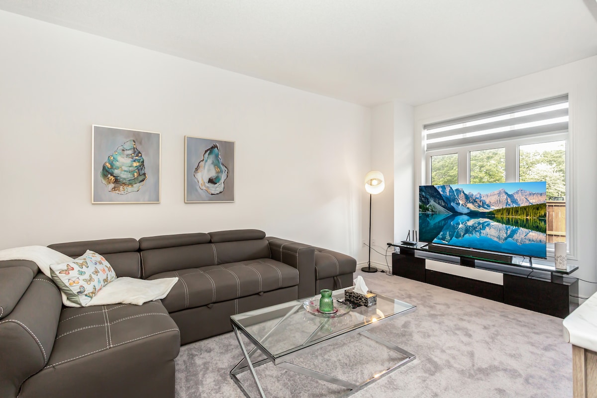 QEWのすぐそばにある、カップルや小さなファミリーにぴったりの新築コンドミニアムです。 新品の家電。4名様用クイーンベッドとクイーンソファベッド、予備の枕と毛布。 Netflix、Amazon Prime、Disney、ライブチャンネルにアクセスできるスマートテレビ。 滝、カジノ、アトラクション、ナイアガラ・オン・ザ・レイク、ワイナリーツアーから車で5分の場所にあります。 食料品店、ショッピング、レストランまで車で5分以内。