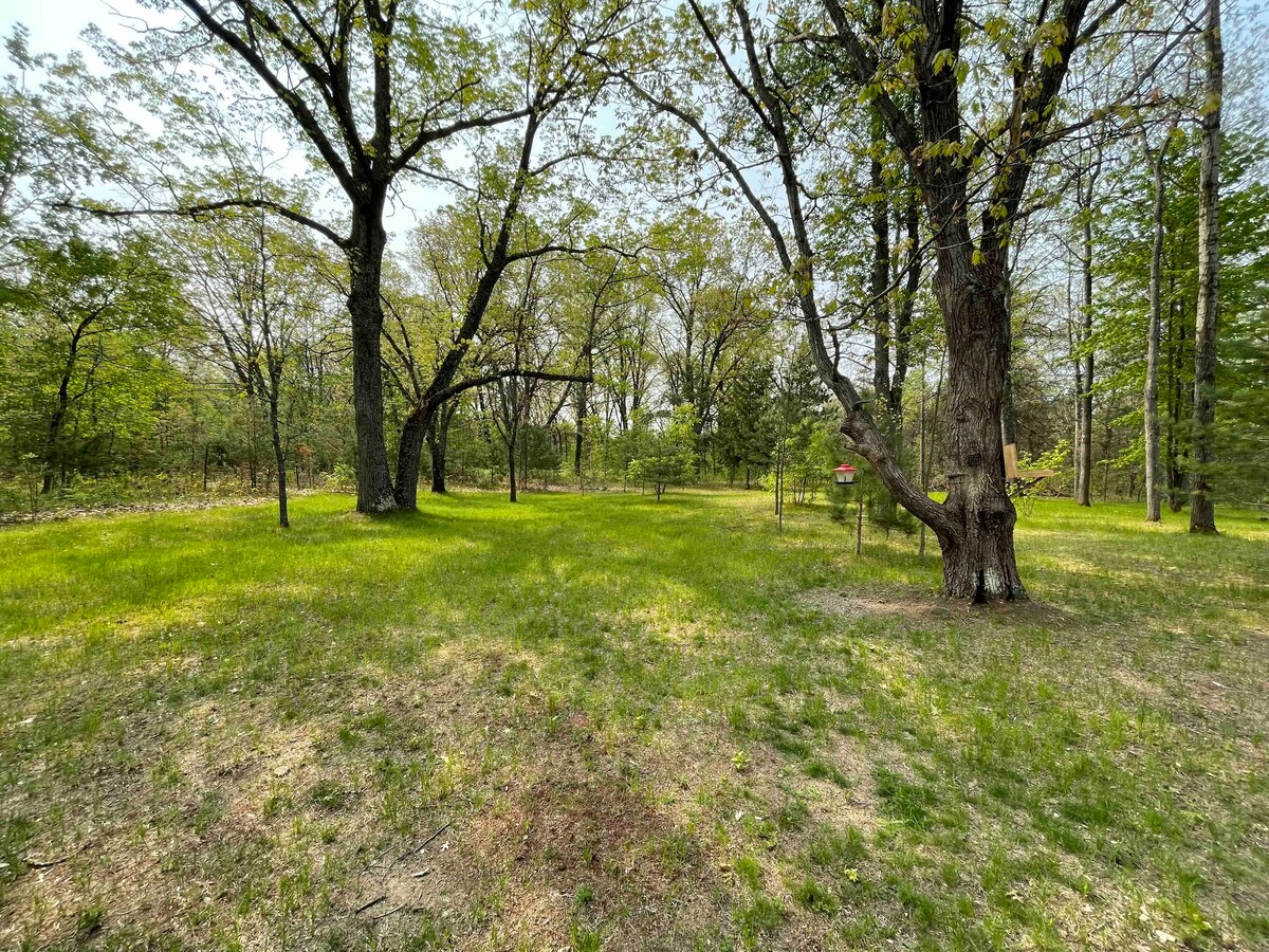 新築のキャビンで森の中での平和な滞在をお楽しみください。 キャディラックから15分です。 2階のリビングエリアからユニークな景色をお楽しみください。 キャビンには、ベッドルーム2室、バスルーム、フルキッチン、広々としたリビングエリアがあります。 最上階の大きなデッキから日の出と夕日をお楽しみいただけます。 アメニティのハイライト:ジャグジー、屋外ストーブ、キューリグ、洗濯機・乾燥機、16フィートx 24フィートの高層デッキ、敷地内の散歩道。 ゲストの立ち入り範囲:キャビンの最上階。 *デッキへの階段を通ってキャビンに入ります。