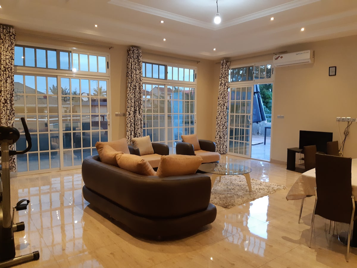 Elyse Guest Housseは、Wi - Fiを含むすべての必需品を備えたモダンなF 4アパートにあなたを歓迎します。 Lomeの新しい行政センターから遠くない静かなエリアのTotsiにあります。GTA (パスポートサービス、米国大使館など) リビングルーム、独立したキッチン、ダブルベッドと蚊帳を備えた寝室3つ、バスルーム2つとトイレ2つ、ガレージとテラスで構成されています。