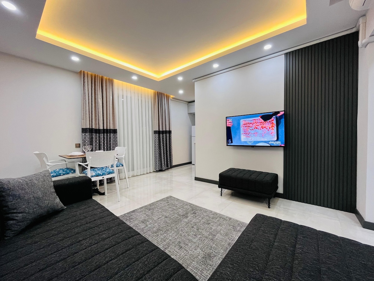 アンタルヤの中心部にある快適でスタイリッシュな1 +1アパートがあなたを待っています。エアコン付きのベッドルームとリビングルーム、設備の整ったキッチン、スマートテレビ、快適なソファ、高速Wi-Fiで、まるで自宅にいるような気分になれます。バスルームには基本的な必需品が揃っています。ビーチや市内中心部に近く、静かで安全な立地で快適な滞在をお楽しみいただけます。
