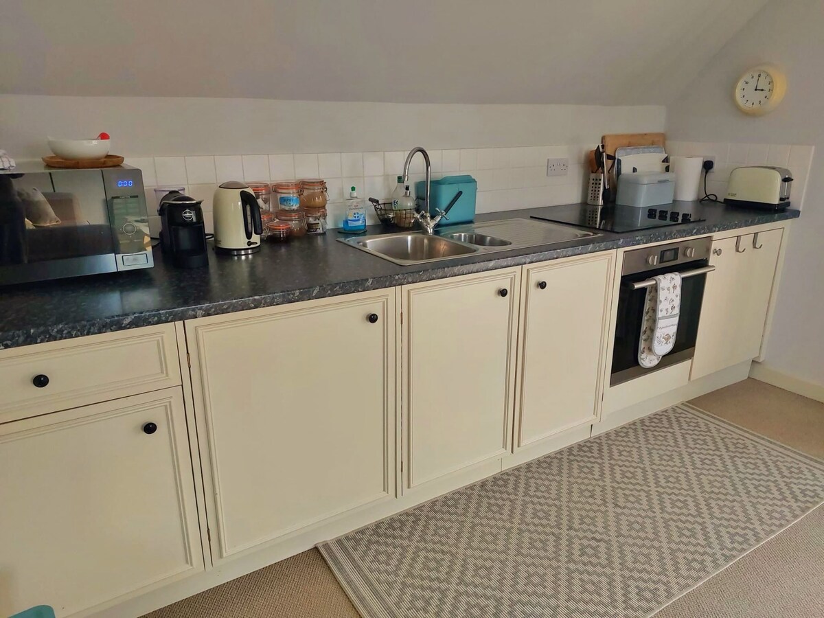 静かでフレンドリーな村にある、カップル向けの隠れ家的な宿泊施設です。 専用車道駐車場、階段付き玄関、所有者のガレージの上にあります。 屋根付きのパティオエリアにはテーブル、椅子があり、田舎の景色が見えます。 パティオのドアからリビング/キッチンエリア、ソファ、テーブル、椅子へのキー付き安全な入り口。 キングサイズのベッド、ベッドサイドの引き出しユニット、引き出し、大きなフィットワードローブを備えた独立した寝室。 トイレ、洗面台、大きなシャワーを備えた独立したシャワールーム。 スマートテレビ、Netflix、Amazonなどにログインしてください。