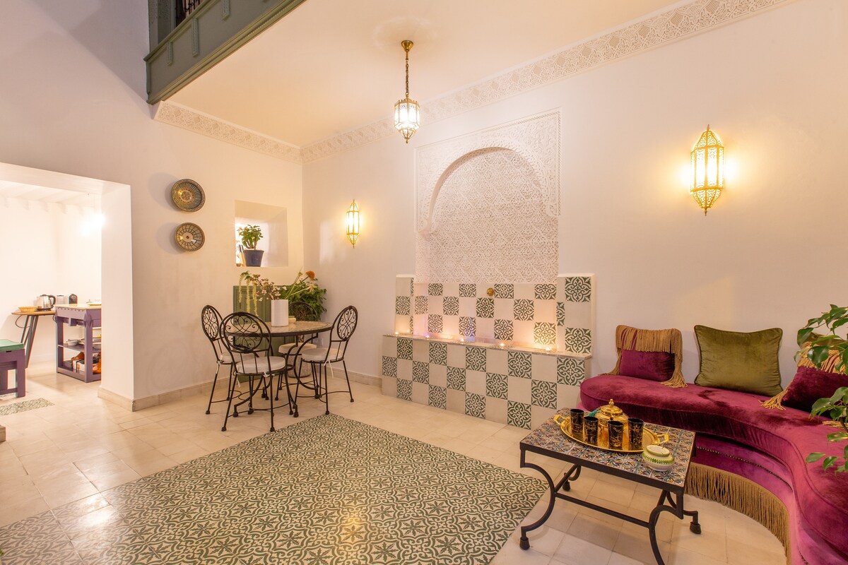 マラケシュ・メディナの中心部にある魅力的なリヤドに滞在しましょう! 私たちのリヤドには、それぞれ専用バスルームを備えた5つの本格的なお部屋があります。 こちらのリスティングは1部屋のみで、ご到着時にお好みのお部屋をお選びいただけます。 モロッコの伝統と現代的な快適さが融合したユニークな空間をお楽しみください。カップル、一人旅、友人同士での旅行に最適です。 スーク、モニュメント、地元のレストランからわずか数歩。マラケシュでの思い出に残る体験に理想的な拠点です。