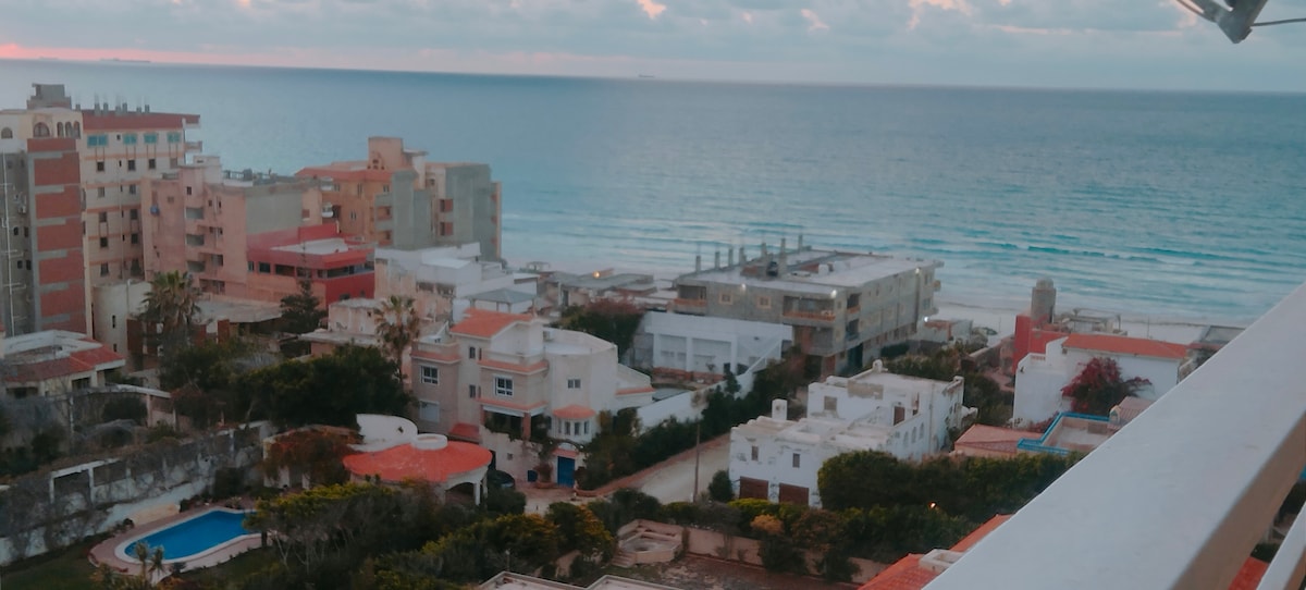 ビアンキにある静かな海岸沿いのワンルームマンション。プライベートビーチへのアクセスと屋上からの海の景色を楽しめます。快適でエレガント、設備の整ったお部屋には、エアコン付きの寝室、シーティングエリア、バルコニーが備わっており、安心して滞在することができます。デジタルノマド、カップル、そしてひとり旅のお客様に最適です。アレクサンドリアのダウンタウンから約9マイル(Uberで25分)の場所にあり、海辺の静けさと都市へのアクセスの完璧なバランスを提供します。