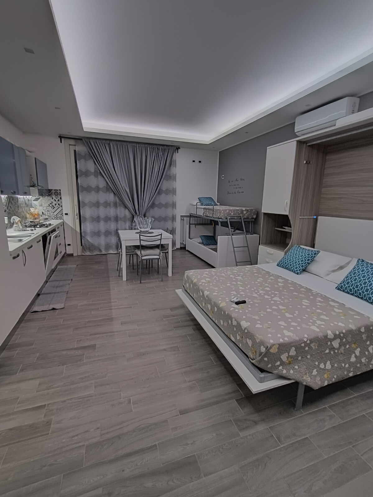 バスルーム、シャワー、キッチン、広い屋外スペースを備えたワンルームです。テレビ、Wi-Fi、洗濯機、食器洗い機、ヘアドライヤー、駐車場など、あらゆるコンフォートを備えています。静かで落ち着いた場所です。