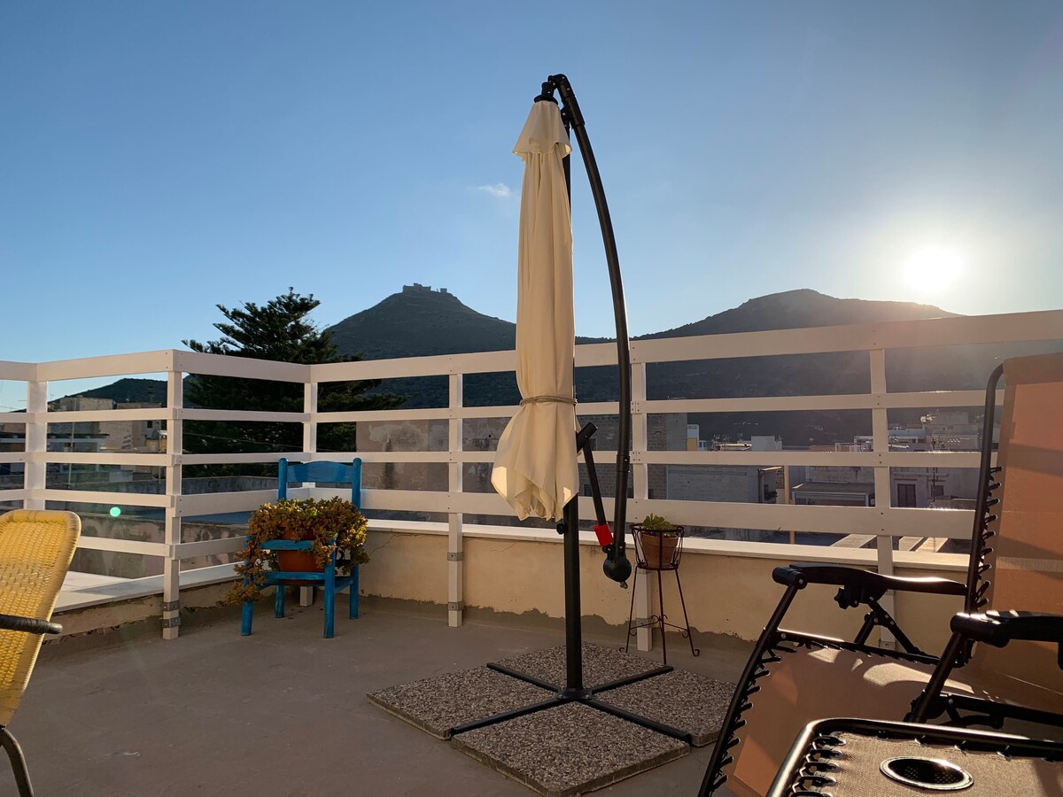 L'accogliente appartamento al centro di Favignana si trova al centro tra la Piazza Matrice ed il suggestivo lungomare. Lo stile di natura Siciliana propone simpatici e delicati colori estivi... Composto da una stanza con letto matrimoniale, angolo cottura (idoneo per colazioni) e bagno. Dispone di una grande terrazza con vista su tutta l’isola! Comodo e romantico per godere dell’atmosfera isolana.