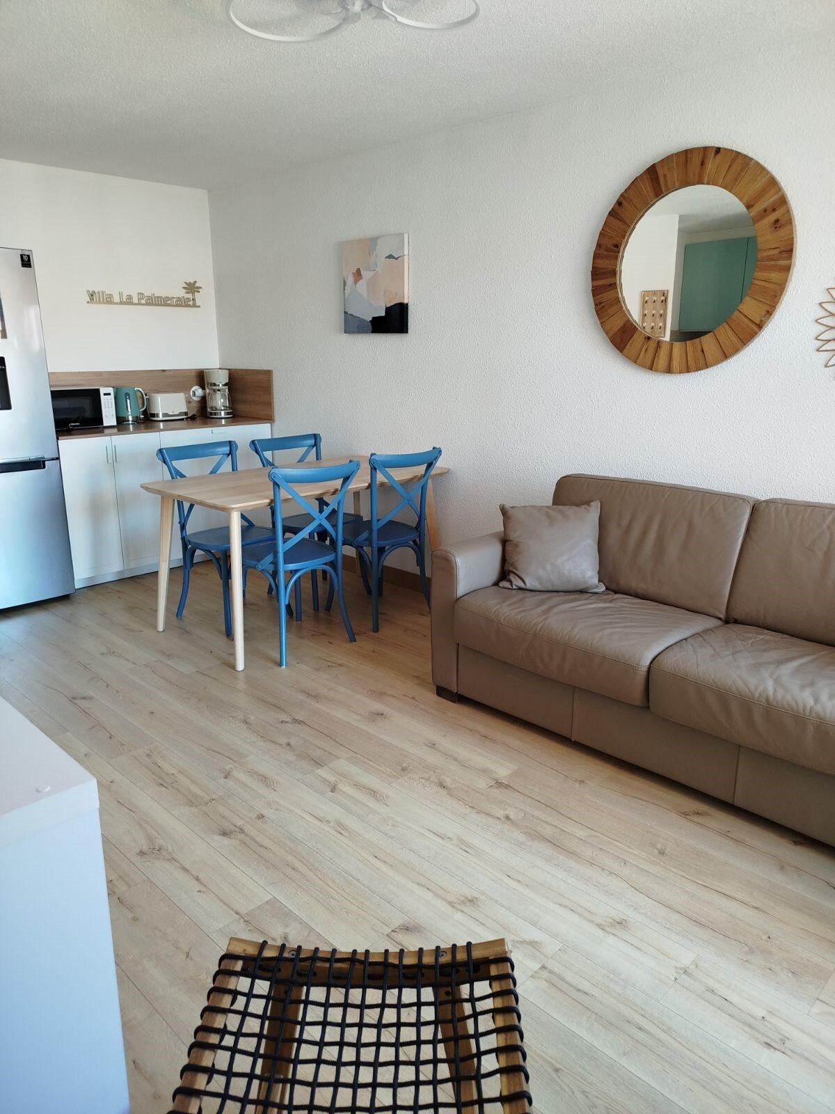 COMPLETE RENOVATION 23 Sea and beach amazing view ...From the wooden terrace, you can have breakfast at sunrise facing the sea, take a nap on the sofa or have an aperitif and enjoy the sun set. Located on the 3rd floor (with lift) of the Héliopolis residence, this studio is fully equipped (air conditioning, 160x200 bed, plenty of storage, bathroom, separate WC, kitchenette). Bed linen and towels are provided, as well as WiFi and a private parking place.