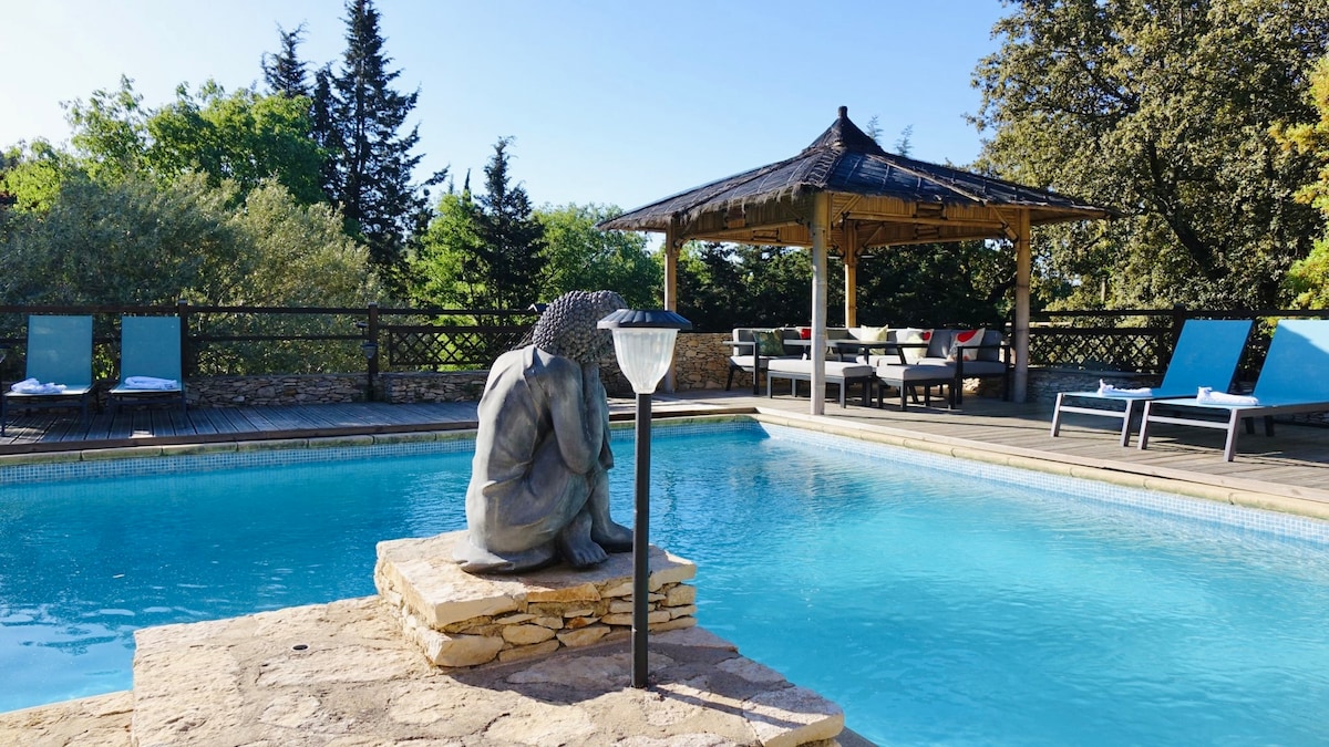 Le Mas des Teullièresは、ガリグの真ん中にある失われた楽園です。この場所は本物で素朴で、南の香りの自然と融合しています。 本物のものと本質が完璧に融合する、シンプルな生活に身を置いてみてください。天然の池の周りでリラックスし、カラフルなトンボと調和して泳ぎましょう。セミの鳴き声に合わせて、地元の美味しい食材、野菜、卵を使ったランチをお楽しみください。深呼吸をしてください。ここでは、あなたは生きています。