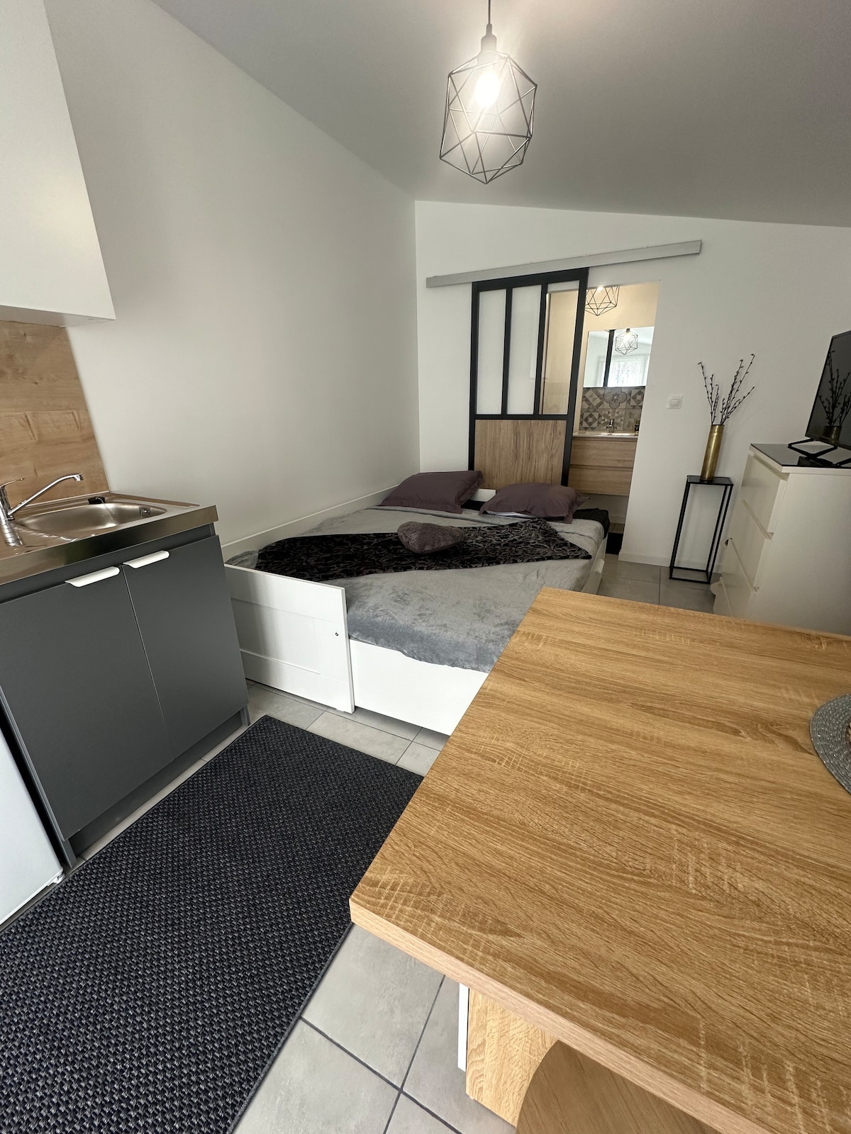 私たちの家の中にある独立したワンルームで、中心部に近く、日曜日の夕方から金曜日の朝まで利用可能です。通学生や出張者に最適です。この15平方メートルのワンルームアパートは、新しい140 cmのベッド、シャワーとトイレのある開放的なバスルーム、キッチンエリアを完備しています。 快適なベッドと独立した空間で、お客様のご満足いただけることと思います。 /!\ 喫煙厳禁の宿泊施設です。家の前での喫煙は許可されていません。