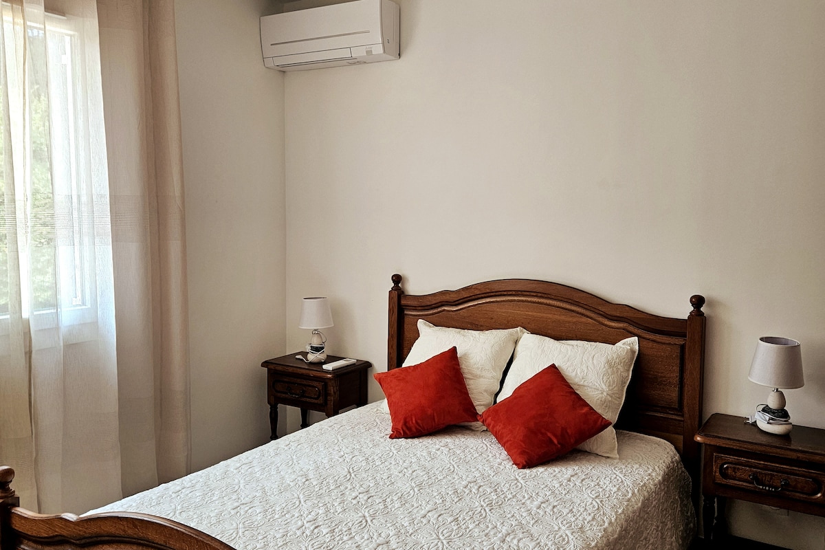 地元の石で建てられた18世紀のカントリーハウスにお迎えできることを嬉しく思います。 私たちは情熱を持って修復しました。とても素敵な滞在をお過ごしいただけることを願っています。 メインハウスとは独立した家です。美しいテラス、160 cmのベッドがある広いエアコン付きの寝室、読書コーナー、冷蔵庫と電子レンジを備えたキッチン、小さなダイニングエリアがあります。 小さなレトロなバスルームには、ウォークインシャワーがあります。