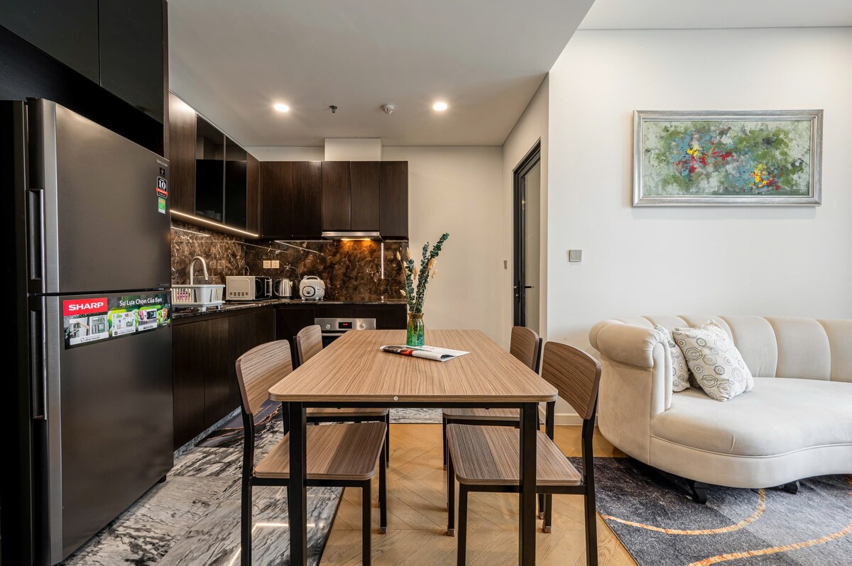 Luxury 5 * The Opera Residence Corner Apartment by ChiHome - River View Bason District 1, The LandMark 81, The Galleria, The Mett Office, District 2 Sala Thiso Mall. -タワーB、スカラ、レベル1 xユニット10 -広さ: 70平方メートル(コーナーユニット) -寝室2室、2 WC、2 ~ 4名様で快適にお過ごしいただけます。 NetflixとYouTubeを備えた65インチスマートテレビ -ソファ、アームチェア、ティーテーブル。 食事テーブル椅子4脚椅 -完全な調理器具 -高速無線インターネットをご利用いただけます ・まるまる貸切のエアコン 建物へのアクセスは24時間365日対応