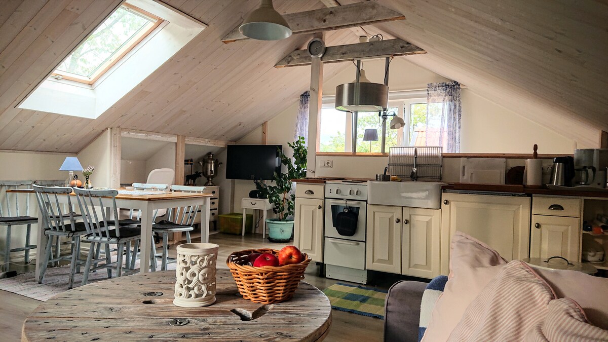 2階にあるとても新しく明るいワンルームで、キッチン、ダイニングテーブル、ダブルベッド、ソファベッドがあります。 部屋から出ると、西側と森、野原の景色を望むテラスがあります。 シャワー付きバスルームは1階にあります。 5 km圏内にはビーチのある湖が2つあり、ラホムズ湾の砂浜まで車で15分で、森や自然公園にも近いです。 ハランドスーセンのヴァローセンススキーリゾートまで車で約30分。 赤ちゃん用の旅行用ベッドをご用意しております。
