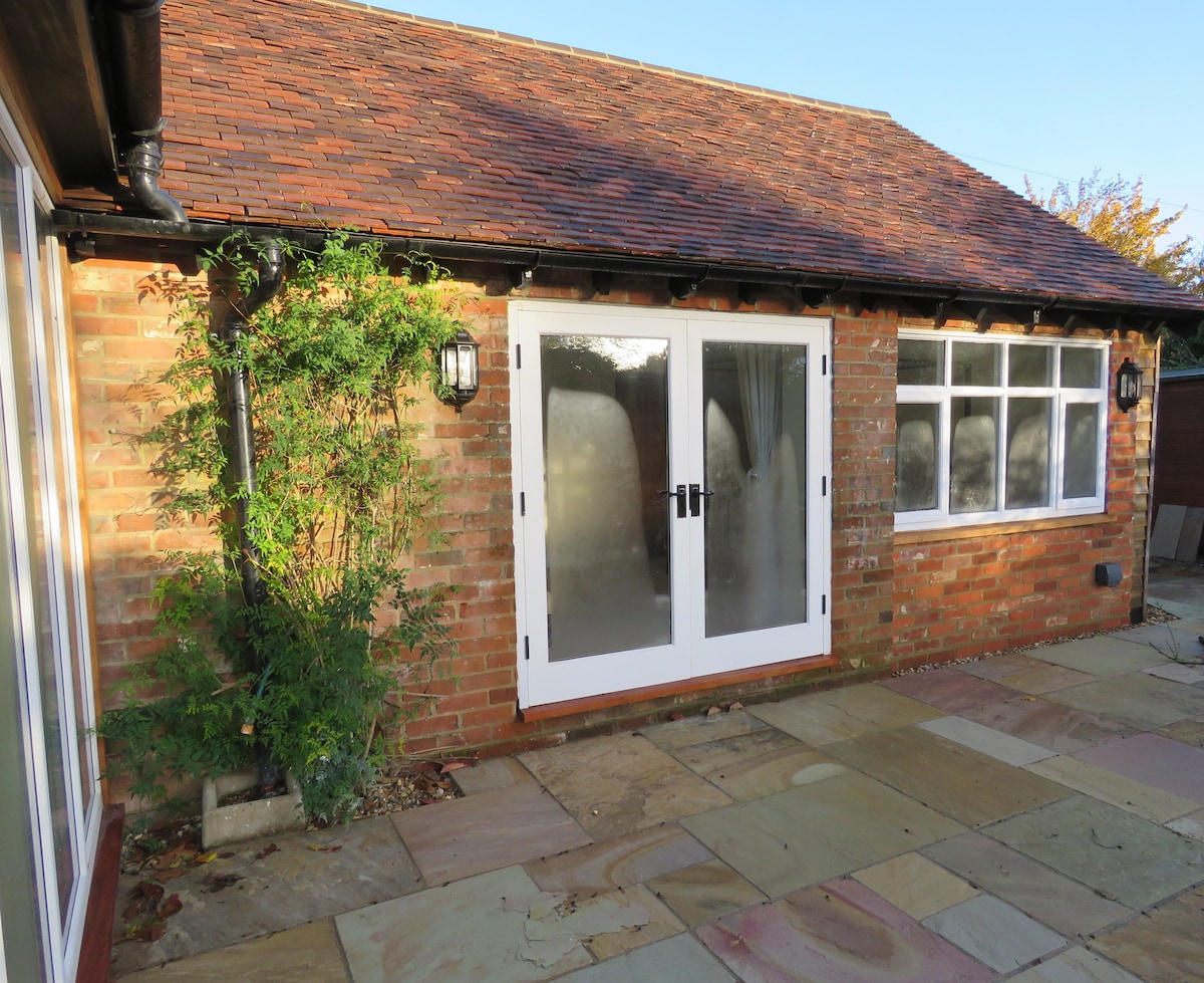 隣接する家の専用車道からアクセスできる、最近作られた別棟です。 宿泊施設には、キングサイズベッド、ハンギングスペース、小さな引き出し、鏡、テレビ、シャワー、トイレ、洗面台、鏡が備わった広いバスルームがあります。 やかん、小さな冷蔵庫などの紅茶・コーヒーメーカー。リネン・タオルをご用意しています。 私道に駐車場あり、近くには食事を提供するパブや地元のカフェテリア(朝食付き)、小さなセインズベリーズやCoopが徒歩圏内にあります。 フリート、ファーンバラ、ファーンハム、M3/M4に近い
