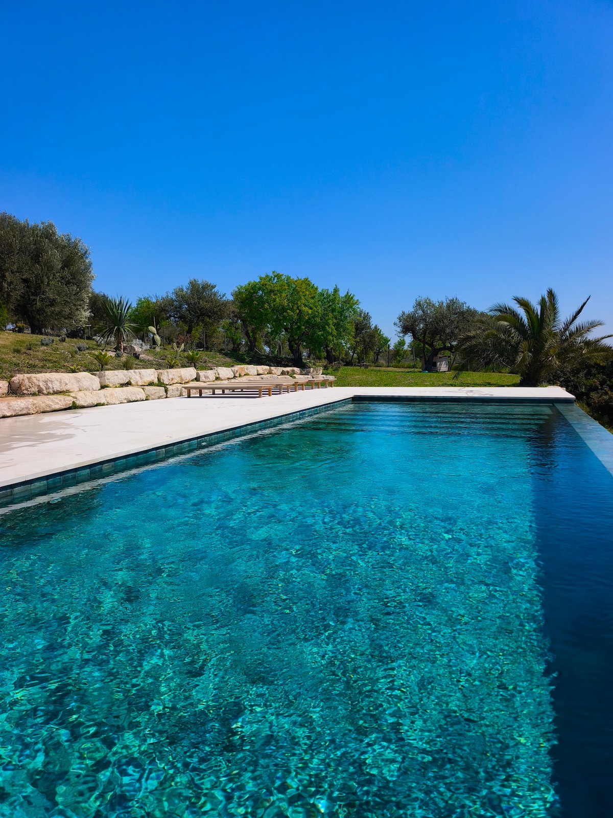 古代の壁とモダンな設備が穏やかに共存する建築家の家です。 寝室とリビングエリアのガラスドアを開けると、なだらかな風景が広がります。 屋根付きのパティオで屋外ダイニングを楽しみ、眺めのいいプールで泳ぎに行きましょう。 Le Casuzzeは、2017年夏に完成したホリデーホームで、ボローニャの建築家によって設計されました。 バロック様式の街ノートの背後にある風景に完全に溶け込み、海、街、周辺の自然美の素晴らしい景色を楽しむことができます。 贅沢さとシンプルさのバランスを見つけることは難しい作業ですが、建築家はこれを非常にうまくマスターしています。 3つのベッドルーム(すべてに専用のバスルームがあります)は厩舎の場所にあり、リビングルームは古い住居地区にあります。 以前は空きスペースで2つの建物が分かれていた場所に、現在はキッチンがあります。 4つ目のバスルームはリビングルームからアクセスできます。 すべての部屋は互いにつながっており、南と東に面した外側のテラスからもアクセスできます。前者からは周囲の風景を見渡すことができます。 7 x 7メートルの大きなプールは、古代の貯水池であるゲビアに似せて設計されています。プールエリアは、家と地中海のマッキア(低木地帯)の間の繋ぎ目となっています。 物件全体が信じられないほど落ち着いた調和のとれた雰囲気で、くつろぐのに最適な場所です。 Le Casuzzeは、街と海を見渡せる、能登の後ろにある美しい尾根に位置しています。 ここから地中海の低木を通って素晴らしい散歩を楽しめます。近くにある数軒の家には邪魔されません。
