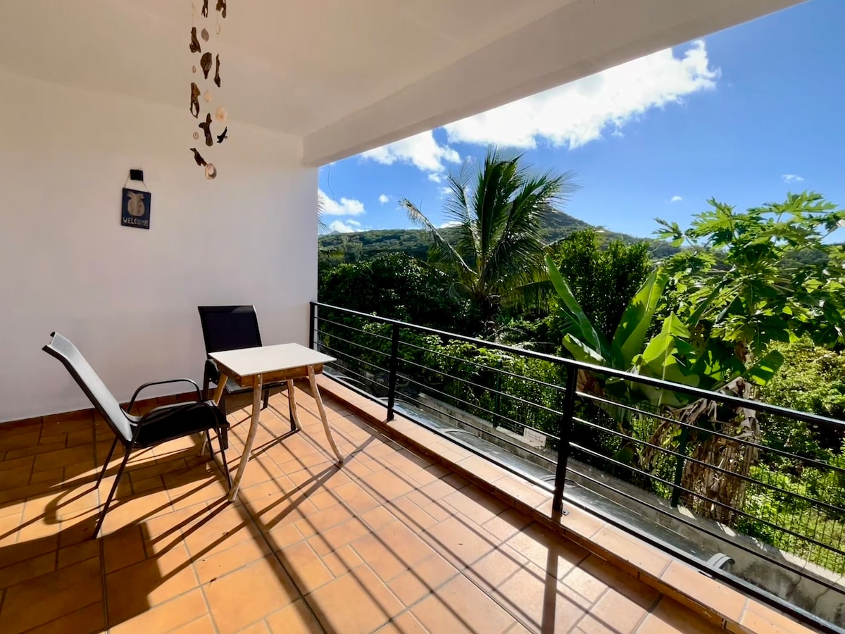 ユネスコ世界遺産のル・モルヌのビーチと島で最高の自然のハイライトまで車で5分。快適なキングサイズベッドを備えたモダンなプライベートスタジオ。専用ダイニングテラス。専用シャワールーム。専用ベーシックキッチン。光ファイバーWi-Fi。エアコンと素晴らしい共用屋上デッキ。世界一位にランクインしているカイトサーフラグーンまで車で数分。世界クラスのハイキングと野生動物。漁村にあります。大人限定。LGBTフレンドリー。 新型コロナウイルスに関連するチェックインと清掃の手順。車が必須です。