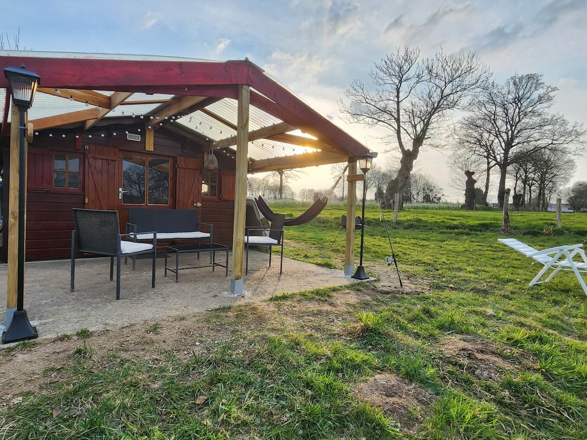 私有の池に面した釣り小屋 4~8名様