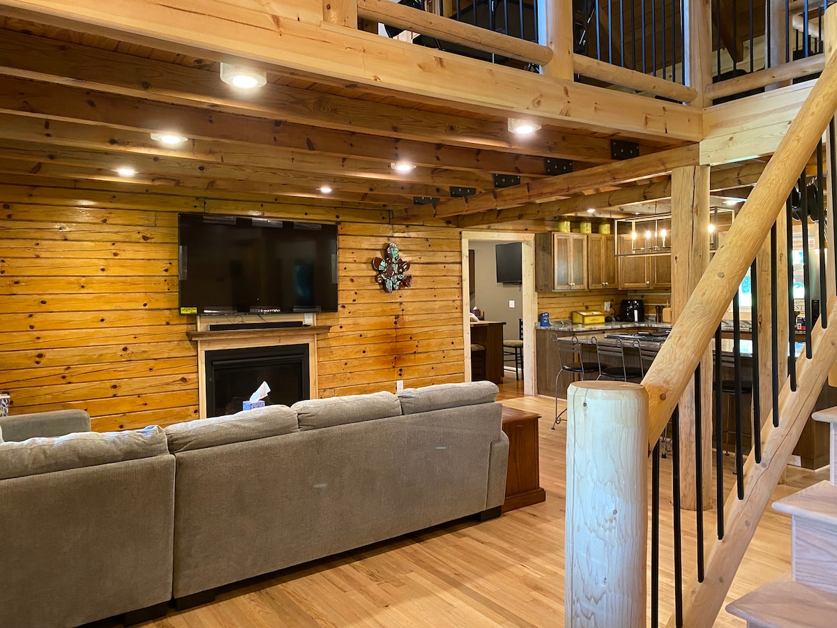 フランケンマスのリトル・バイエルンとバーチ・ラン・アウトレットからわずか数分の17エーカーのプライベートエリアにある素朴なログハウスです!高速Wi-Fi、テレビ3台、居心地の良い暖炉、コーヒー&ワインバー、大きなブラックストーン製グリドルとバーベキューを備えた屋外キッチンをご利用いただけます。風景の良い池で泳いだり釣りをしたり、ファイヤーピットのそばでリラックスしたり、電気接続のあるRVを駐車したりできます。追加料金で結婚式やグループ旅行にご利用いただけます。イベント用の納屋と宿泊施設で、忘れられない思い出を作りましょう。今すぐご予約ください