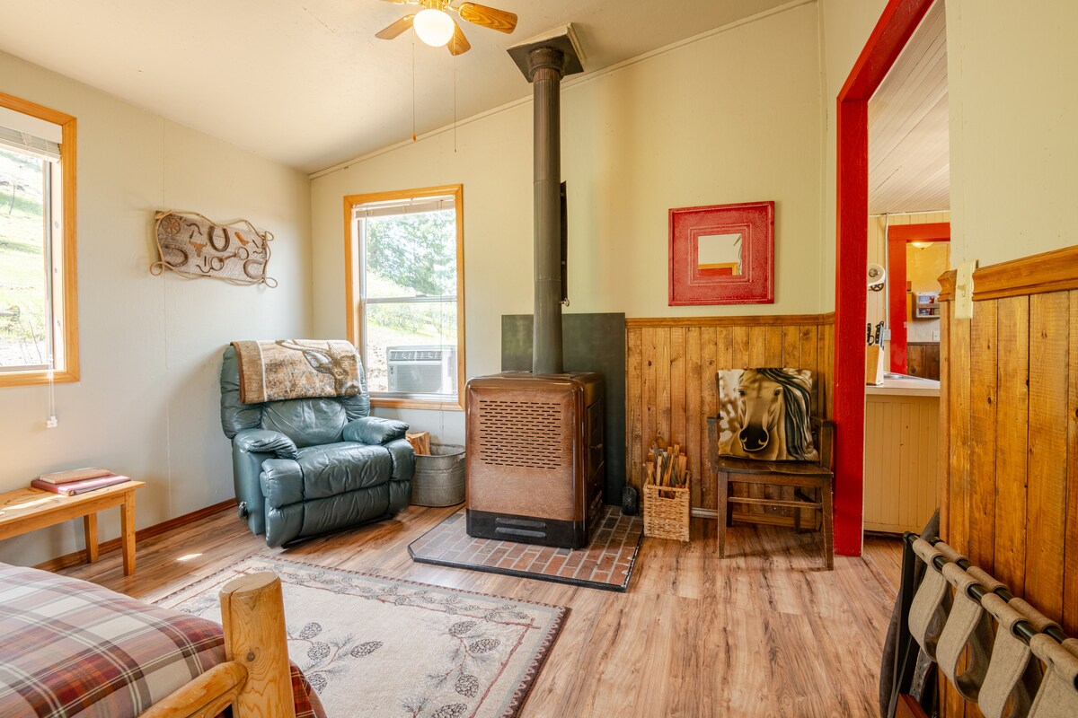 オレゴン州東部の静かな小さな町にある、本物の牛牧場の景色の良い丘の中腹にある居心地の良いキャビンです。この居心地の良い1ベッドルーム/1バスルームのキャビンは、屋根付きのテラスからエルクの鳴き声を聞くことができます。ランドリーと収納付きの泥除け部屋、設備の整ったキッチン、追加の寝室として布団があるオープンリビングエリアが特徴です。窓を開けると、裏口からルディオ山の谷の景色が見えます。家族連れ、狩猟、釣り、ハイキング、カヤック、観光、または静かでリラックスした旅行に最適です!