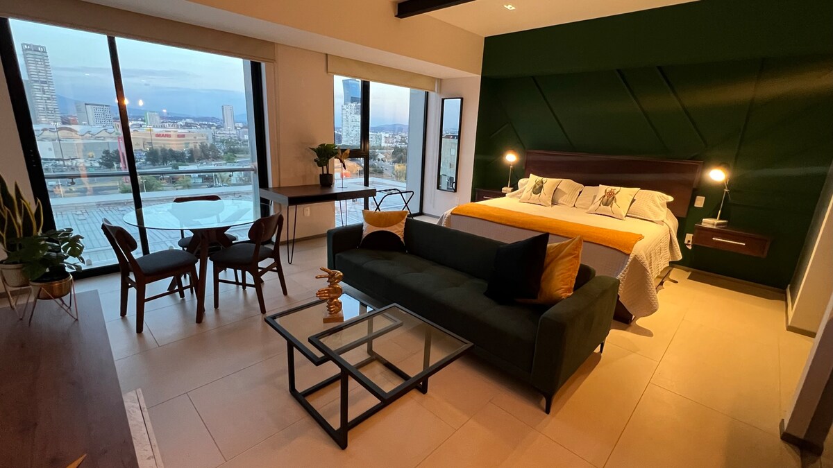プエブラの最も高級でモダンなエリアにあるアパートメントで、モダンなプエブラのパノラマビューが楽しめます。ショッピングセンター、バロック博物館、公園などから徒歩数歩の居心地の良いプライベート空間です。 快適なひとときを過ごすために消毒されたダイナミックな空間をすべてお楽しみください。また、短期滞在でも長期滞在でも楽しんでリラックスできるように必要なものが揃っています。 お客様のニーズに合わせて設計された弊社の高級アメニティをご利用ください。 1台分の専用駐車場。