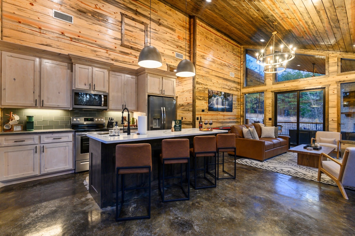 Sugar in the Pinesは、ワチタ山脈近くの2エーカーのプライベートエリアにある、新しく建てられた豪華なハネムーン用キャビンです。床から天井までの窓からは、松林の景色が楽しめます。屋外の暖炉を楽しみながらホットタブに浸ったり、広がる夜空の下で星を眺めたりできます。ロマンチックな休暇が待っています。お迎えする日が楽しみです!