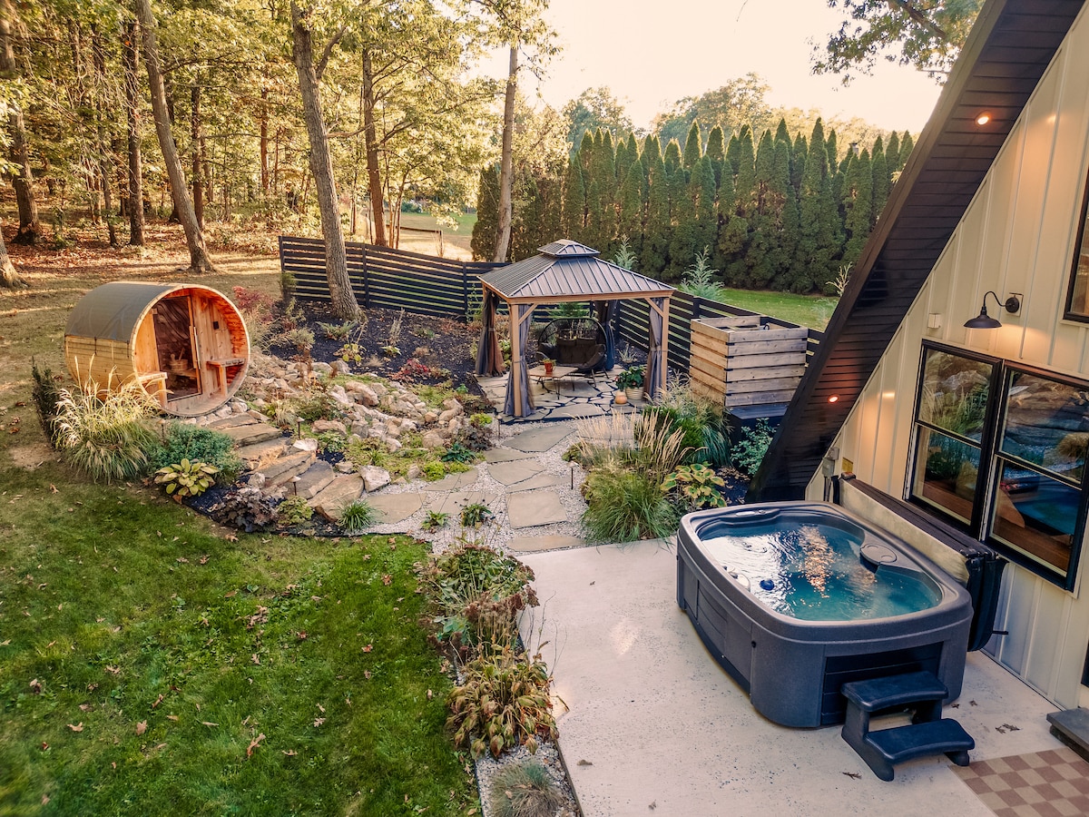 Escape to the charming 2BR 1Bath A-frame on a secluded wooded property just 10 mins away from Shippensburg, PA. Whether you're looking to savor nature‘s tranquility from the luxurious hot tub, share stories around the fire pit, or explore picturesque Cumberland Valley, this will be the ideal starting point for your adventures. *2 Comfortable BRs *Open Design Living *Full Kitchen *Smart TV *Backyard (Hot Tub, Sauna, Fire Pit, BBQ, Outdoor shower) *High-Speed Wi-Fi *Free Parking *EV charger