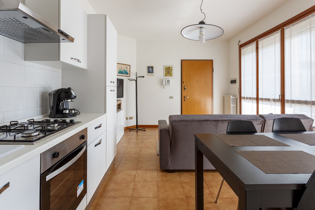 広々とした1ベッドルームアパートで、全面改装済みです。 ミラノのダウンタウン、スーパーマーケット、高速道路の出口、お店、ショッピングセンターへ簡単にアクセスできる通路のある駅の近くです。 広々とした整頓されたリビングエリア、上品な家具、ソファベッド、55インチテレビ、調理器具を含むIHコンロを備えたキッチン。 バスルームには大きなシャワー、シャワーフォーム、シャンプー、ヘアドライヤー、洗濯機があります。 クローゼットと引き出し付きの広い寝室。