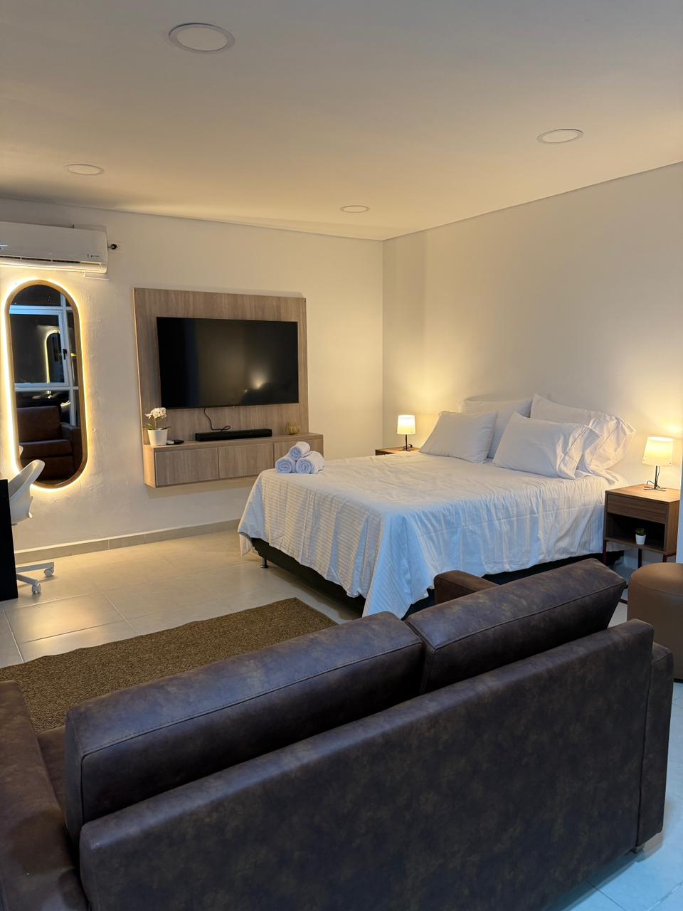 ホテル・アーバン・スタジオの17階にあるモダンなアパートで、メデジンの素晴らしい景色を眺めることができます。 テソロモールまで徒歩わずか10分、ナイトライフの盛んなエリアに近いにもかかわらず、静かで快適なエリアにあります。快適なキングサイズベッド、フルキッチン、エアコン、洗濯機、ガス乾燥機、高速Wi-Fi、ルームサービス付きのAl Almaレストランへのアクセスが特徴です。建物にはプール、ジャグジー、ジム、作業室があり、24時間年中無休のセキュリティがあります。