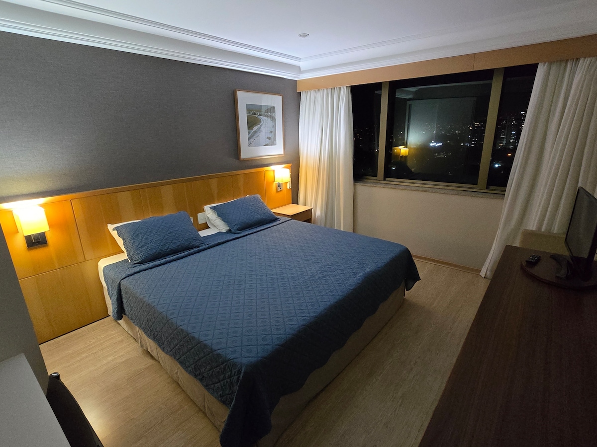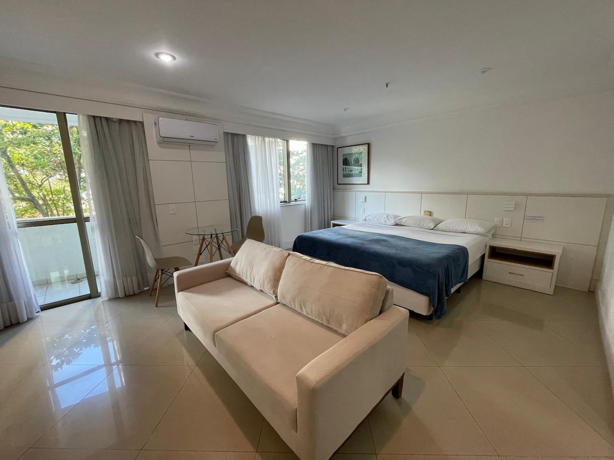 ビーチから1ブロック—ホストはドイツ語、英語、スペイン語を話します。 静かで緑豊かな場所、景色の良いバルコニー、ハンモック、朝の太陽。 ソファベッド、テレビ、エアコン付きの一体型リビングルーム。 クイーンベッド、クローゼット、セーフティボックスを備えた寝室。 温水プール、サウナ、レストラン、ミニマーケット、駐車場のあるコンドミニアム。 📍 便利な立地:近くに市場、ショッピングモール、ビーチがあり、車、地下鉄、BRT、Uber、ボートタクシーでアクセスできます。 ⭐ 理想的なゲスト: •カップル • 小さな家族 • エグゼクティブ • リモートワーク+レジャー