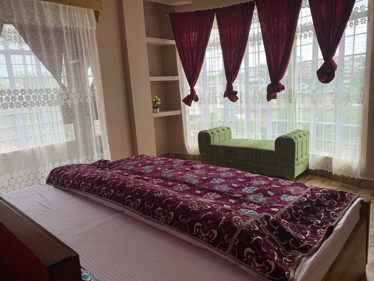 魅力的な家の4階にあるこのプライベートな屋上スタジオは、シロングの丘陵地帯の素晴らしいパノラマビューを眺めることができる静かな隠れ家です。おひとり様、カップル、小さな家族連れの方に最適なこの空間は、完全なプライバシーとくつろげる居心地の良い雰囲気を保証します。 明るく風通しの良いスタジオには、キングサイズのベッド、設備の整った簡易キッチン、24時間365日温水が使えるモダンなバスルームがあります。 霧が立ち込める景色を楽しみながら、朝のコーヒーや夜のお茶をお楽しみいただけるプライベートバルコニー。
