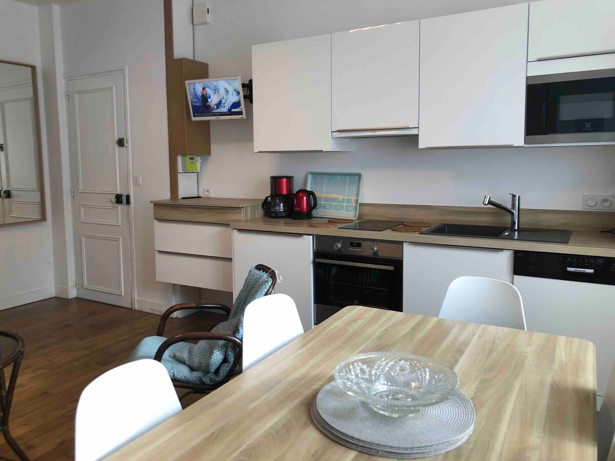シャッターを開けると海が見えます。エレベーターでエクリューズビーチに降りて、光に包まれたクレール・ドゥ・ルーヌの遊歩道を散策しましょう。 2018年に建築家によって全面改装された、ディナールの象徴的な旧ホテルにあるこのアパートは、まさにそのような場所です。 ディナールの中心部に位置し、アパートのすぐ近くにはビーチ、映画館、あらゆる種類の店舗やレストランがあり、有名な市場は徒歩5分です。 家族や友人との素晴らしい滞在をお約束します。
