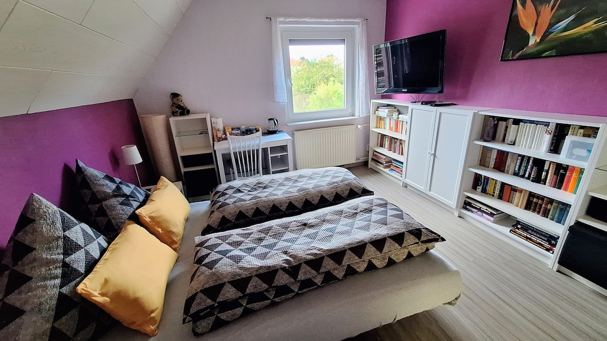 小さな公園のすぐ向かいにあるウィルヘルミニアンの歴史的建造物の4階から素敵な眺めのアパートで、旧市街の中心部から徒歩12分、駅から500 m、エルベ川から300 mです。 インテリアは北欧エレガントで、小さなベッドルーム、ソファ付きのリビングルーム(さらに2人寝ることができます)、小さなバルコニー、モダンで設備の整ったキッチン、シャワー付きのバスルーム、小さな廊下があります。 アパートからの眺めは、4階までの長い階段になります。