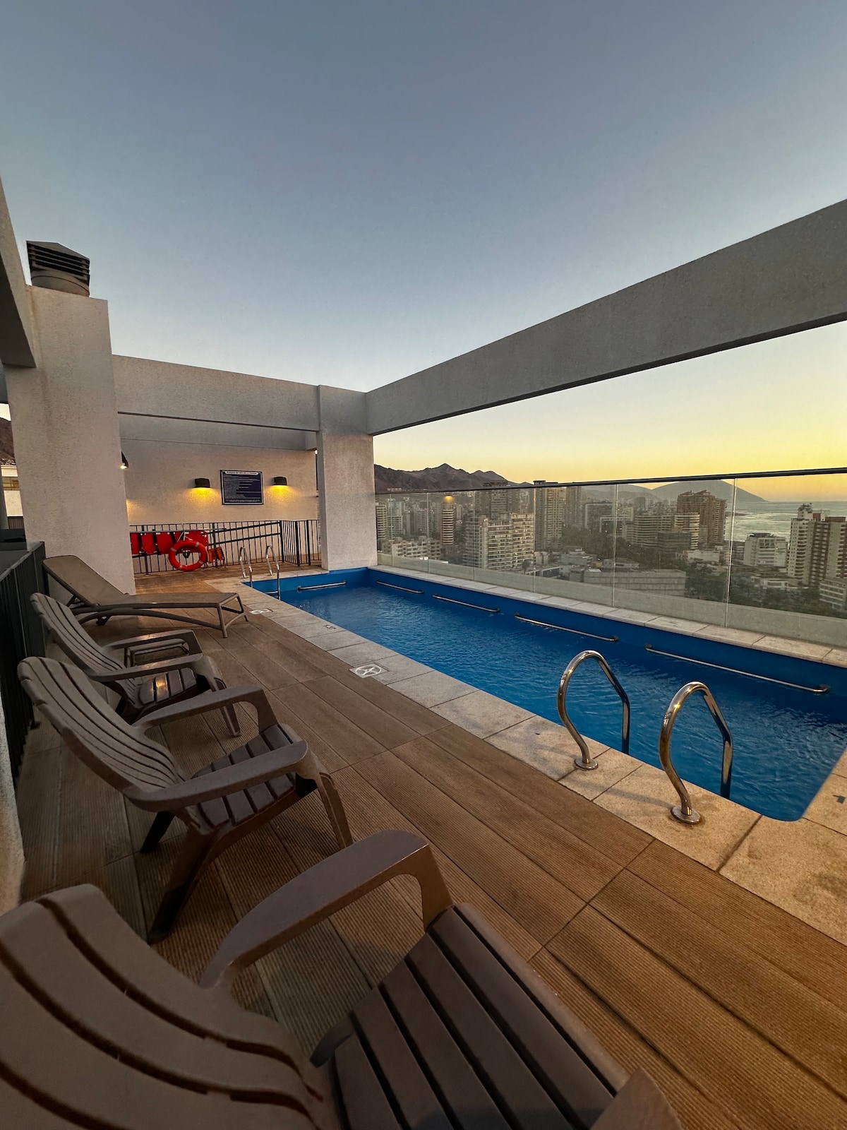 アントファガスタ北部で家族で過ごす滞在を楽しむために、プールとキンチョ(小屋)を備えた多くの楽しみのあるパノラマをお楽しみください。人工ビーチ、パブ、レストラン、モール、スーパーマーケットの近くにあり、18階からの海の眺めが素晴らしい。 3部屋の広々としたアパートメント:バスルーム付きのダブルベッドルーム、1ベッドルーム2室、共用バスルーム。独立したキッチン、自動洗濯機/乾燥機、リビングダイニングルーム。6名様までご宿泊可能です。