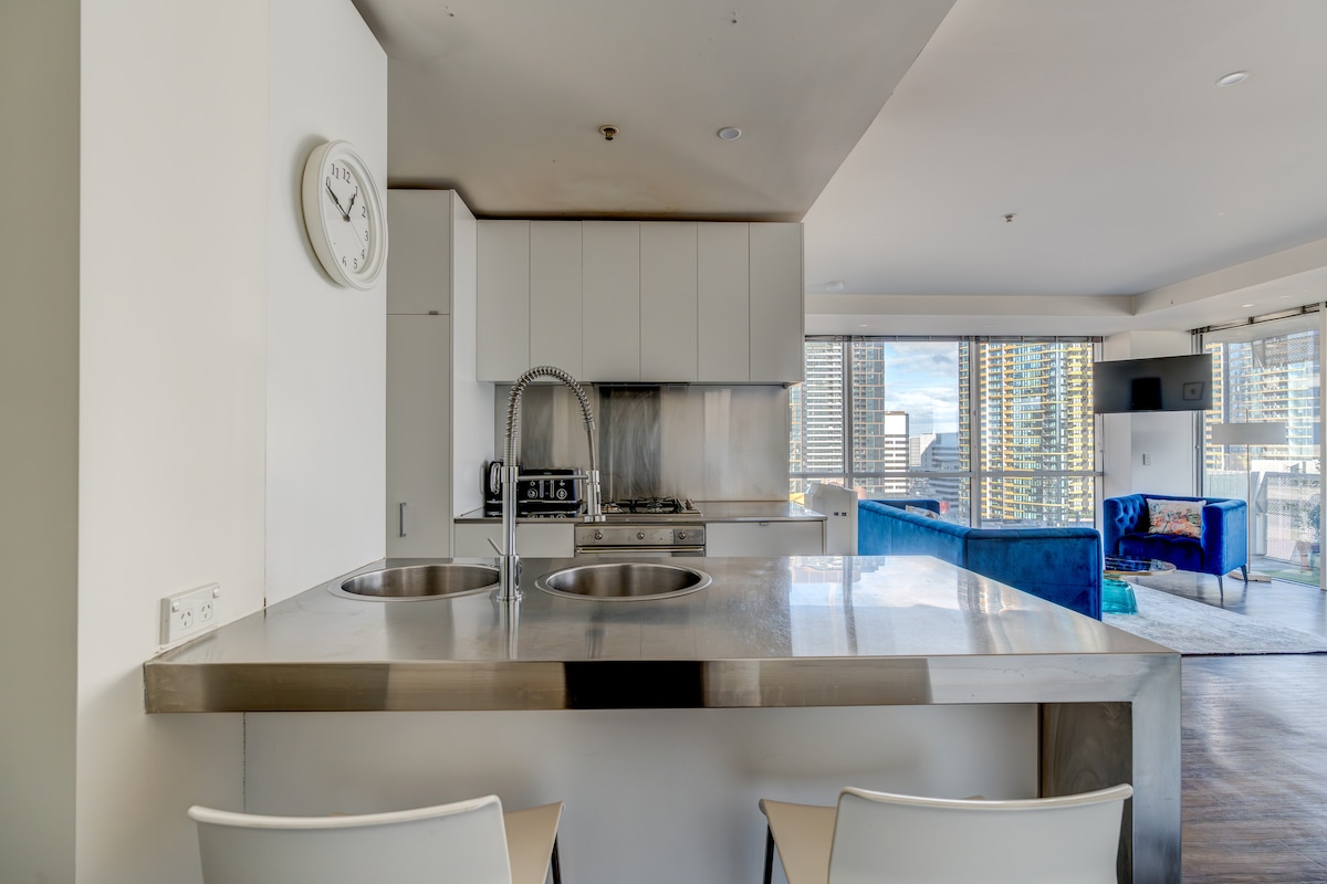 美しい湾の眺望を楽しめる、サウスバンクのインターナショナルにあるアパートの快適さをお楽しみください。 ヤラ川、クラウン・エンターテイメント・コンプレックス、新鮮でおいしいシーフードで知られる活気あるサウス・メルボルン・マーケットまで徒歩ですぐです。 近くには、メルボルン・エキシビジョン・センター、DFO、サウスバンク・ショッピングがあり、路面電車で市内を簡単に移動できます。 高級フードマーケットから賑やかなバーやカフェまで、メルボルンの魅力を満喫できる場所です。