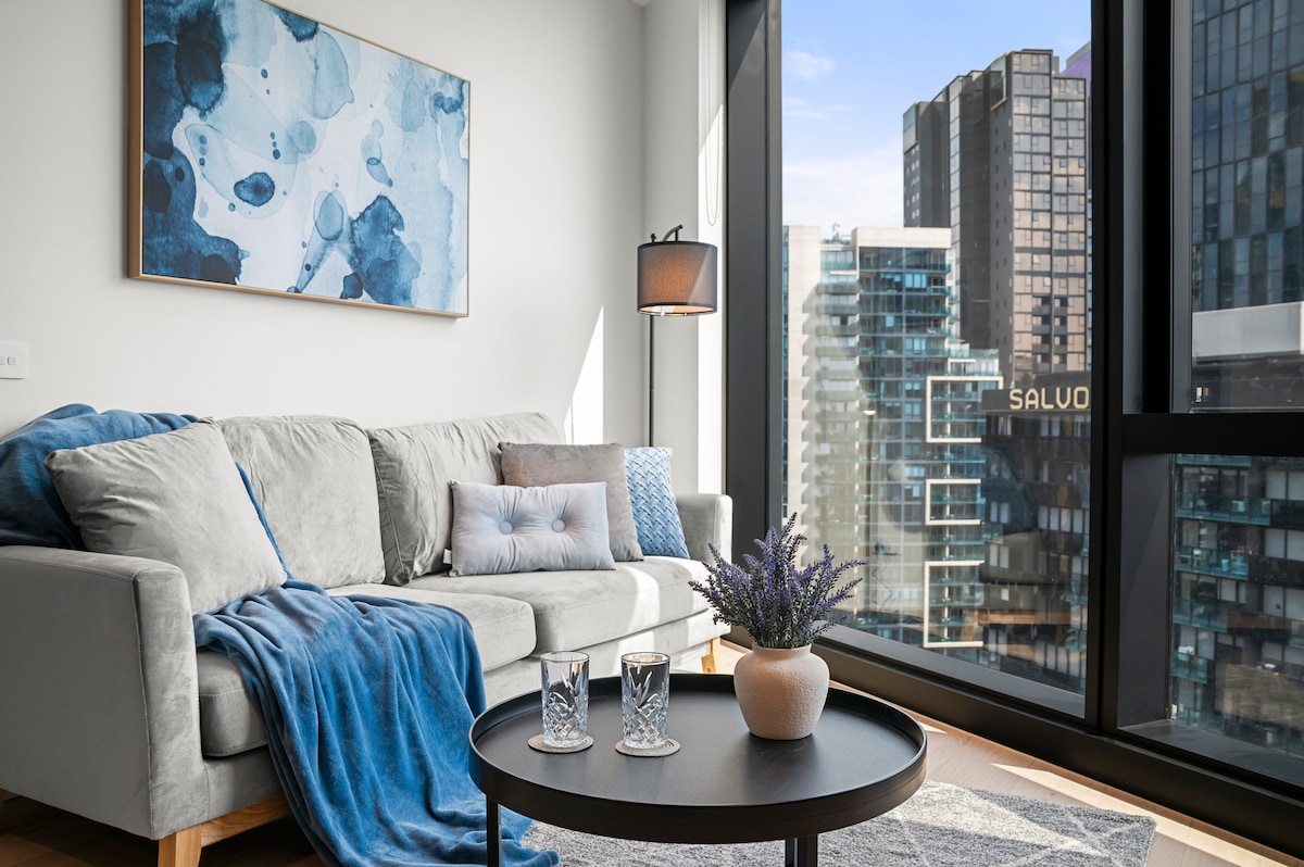 ヤラ川とクラウン・エンターテイメント・コンプレックスの近くにあるこの理想的なロケーションで、メルボルンとベイのパノラマビューを楽しみながら、ご褒美の休暇をお楽しみください! 快適に過ごすために必要なものがすべて揃った現代的な安らぎの場所で、手間のかからない滞在をお楽しみください! ★無制限Wi-FiとNetflix ★現代の家電製品 ★リネンとバスアメニティ ・★洗濯機と浴室乾燥機完備 ★書斎/仕事用スペース ★エアコンと暖房 ★ウェルカムギフト ★快適なクイーンサイズベッド プール、ジム、サウナをご★利用いただけます