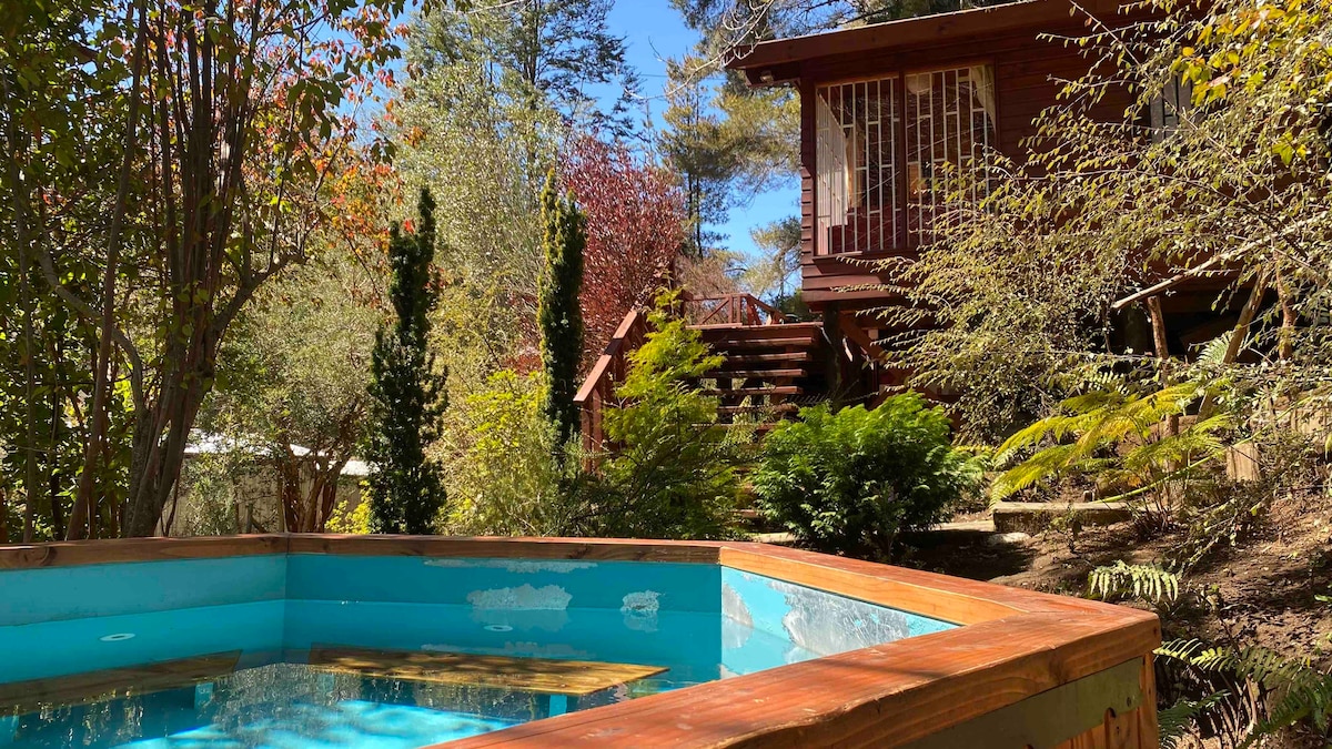 「Cantos del Chucao」キャビンは、キュラカウティンのコンギリオ国立公園の入り口から2キロのところにあり、自然を楽しむのに理想的な隠れ家です。6名様まで収容可能で、3つの寝室、設備の整ったキッチン、ケーブルテレビ、Wi-Fi、川沿いのテラスを備えています。専用のティナハ(価格:35,000ドル、ご利用の日に別途お支払い)とグリルは、リラックスして共有するのに最適です。周囲には在来の動植物が生息しており、冒険と快適さを同時に楽しめます。