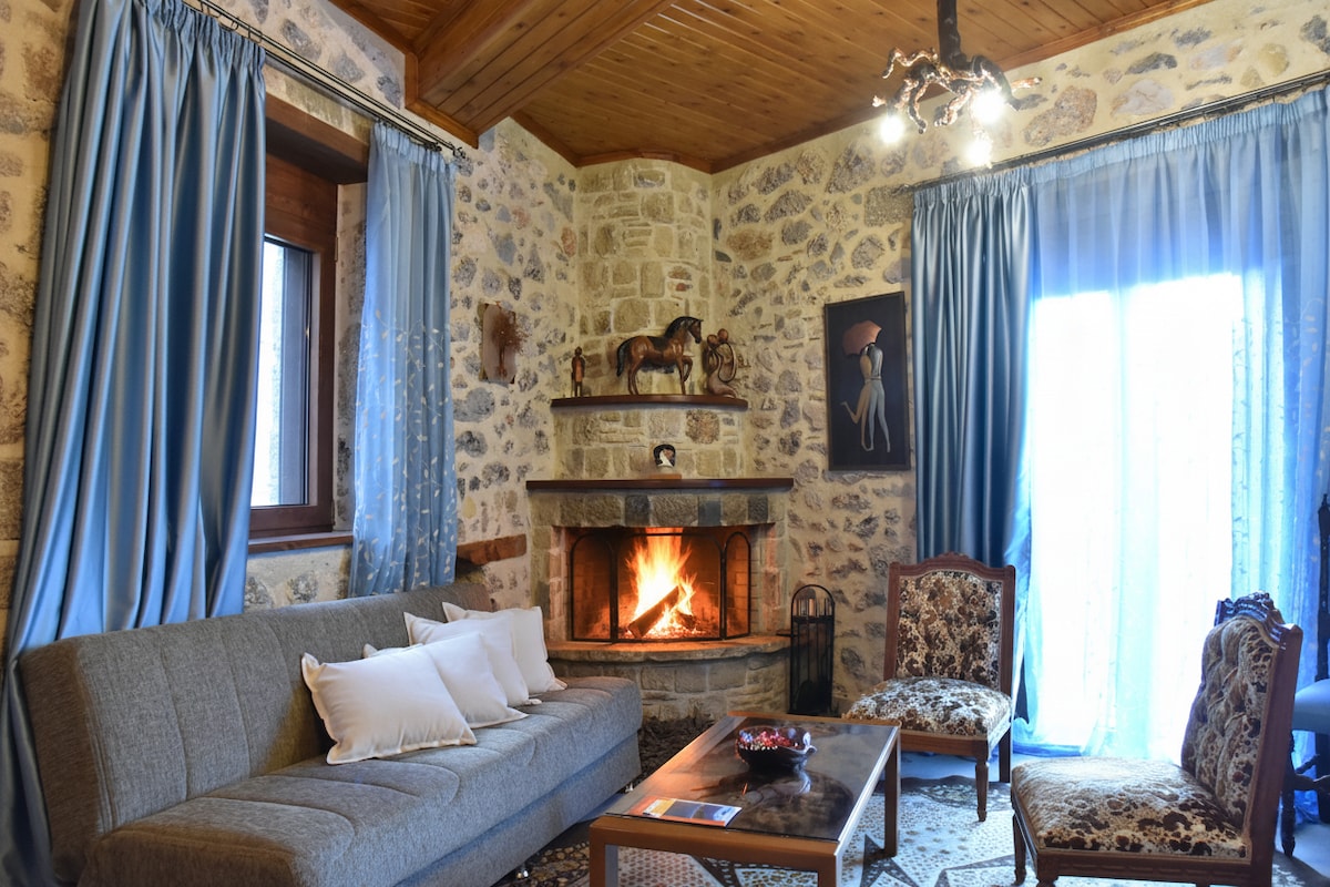 Our bright, colorful, and cozy home is located in the small, traditional, and famous village of Mycenae, right in the heart of the Peloponnese, just a short drive from the picturesque town of Nafplio. Built at the top of the village, it offers stunning views of the mountains and the valley below. Full of sunlight, big balconies, windows, and a lovely fireplace, it’s perfect for a quiet stay. Just a few minutes’ walk from the archaeological site and close to local restaurants and mini markets.