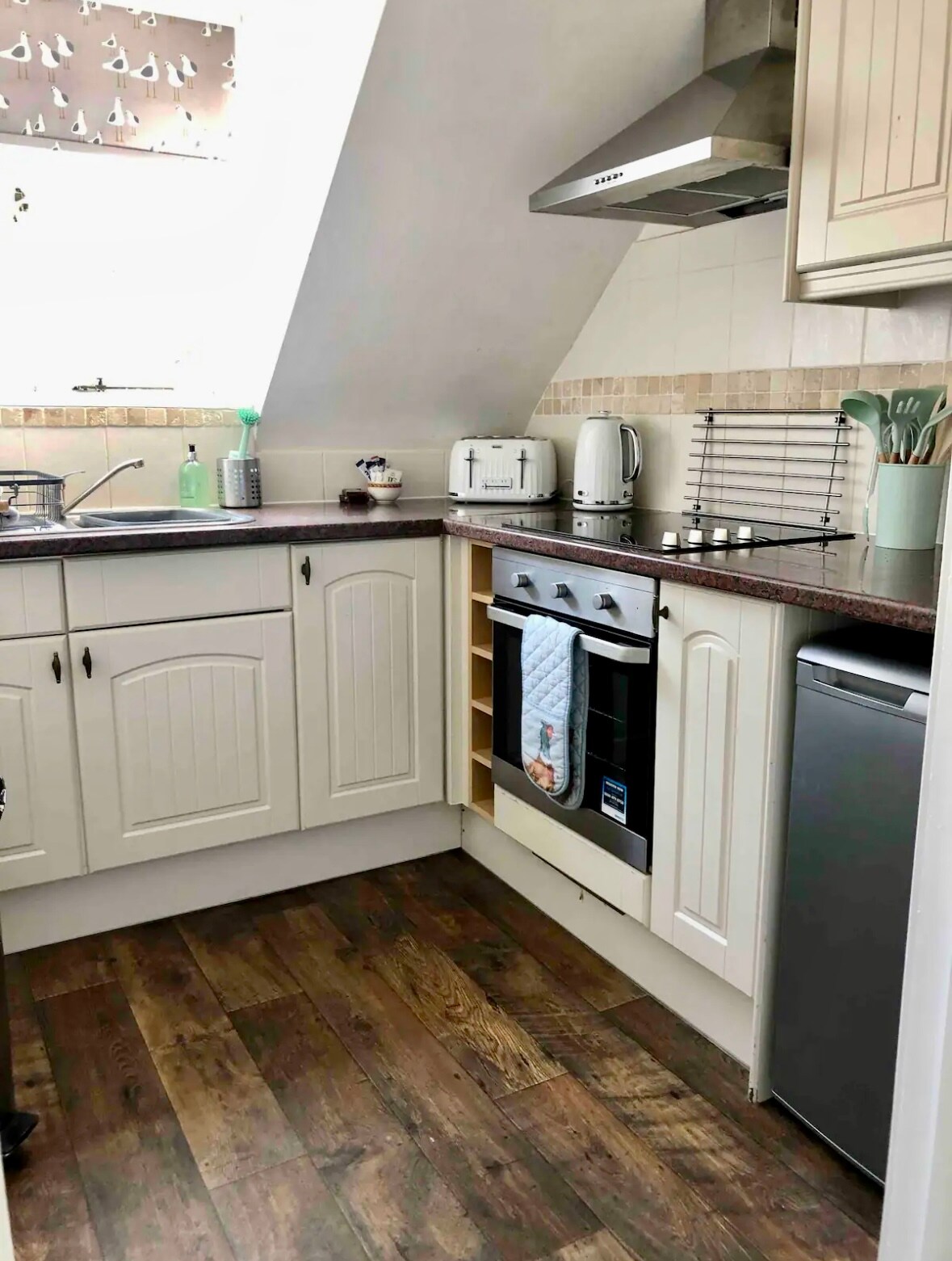 1階、ノースフラット、レッドロッジ ターベット中心部の広々とした1階のフラット。 宿泊料金 通りに面した1階、オープンプランのキッチン、ダイニング、リビングエリア、32インチスマートテレビ、Wi-Fi。 キッチンには電気コンロ、オーブン、電子レンジ、冷凍冷蔵庫が備わっています。 広々としたダブルベッドルームには、収納付きのワードローブが備わっています。 トイレ/浴室:床下暖房付きのモダンで広々とした浴室。 ホールの棚には自転車2台を収納できます。自転車をお持ちの場合は、ご滞在前に棚の鍵をリクエストしてください。 🚴🏻♀️ 路上駐車場。
