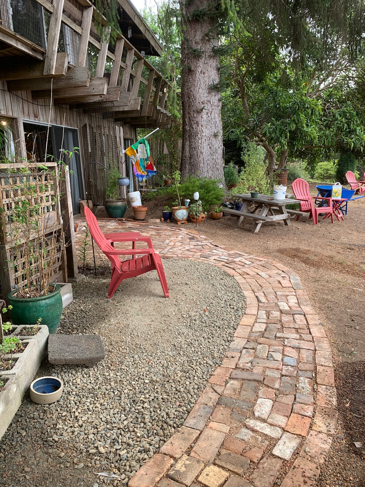 メンドシーノ郡の海岸から数マイル内陸にある、レッドウッドの間にある平和なコテージです。 天井が高く、天窓があるため、この空間は広々としていて、自然光と雄大な木々の景色を楽しむことができます。 周辺のコミュニティは特別で、多くの住民が何十年もここに住み、農場を手入れしています。 ここに来る途中で、牛、馬、豚、ニワトリを見ることができるでしょう。 鹿、コヨーテ、キツネ、ピューマ、フクロウ、タカ、ハゲタカ、クマもこのエリアを頻繁に訪れます。